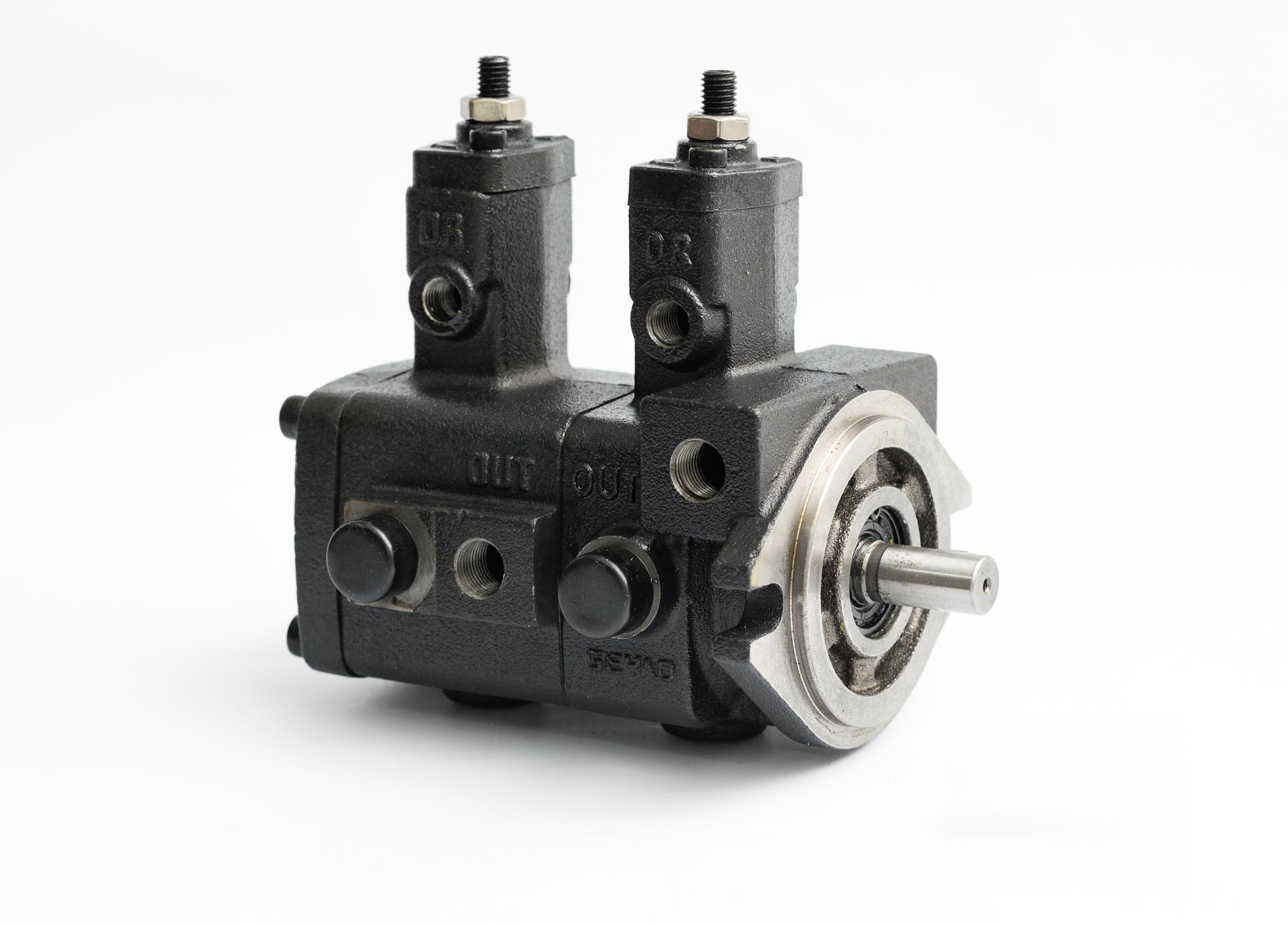 Este tipo de bombas a paletas, de cilindrada variable posee iguales características en cuanto a su función, construcción, duración y regulación que la bomba simple VVP1, con la dierencia que se obtienen en un mismo eje dos salidas independientes de fluído con el consiguiente ahorro de acoples, motores, bridas, dispositivos de montaje, etc.