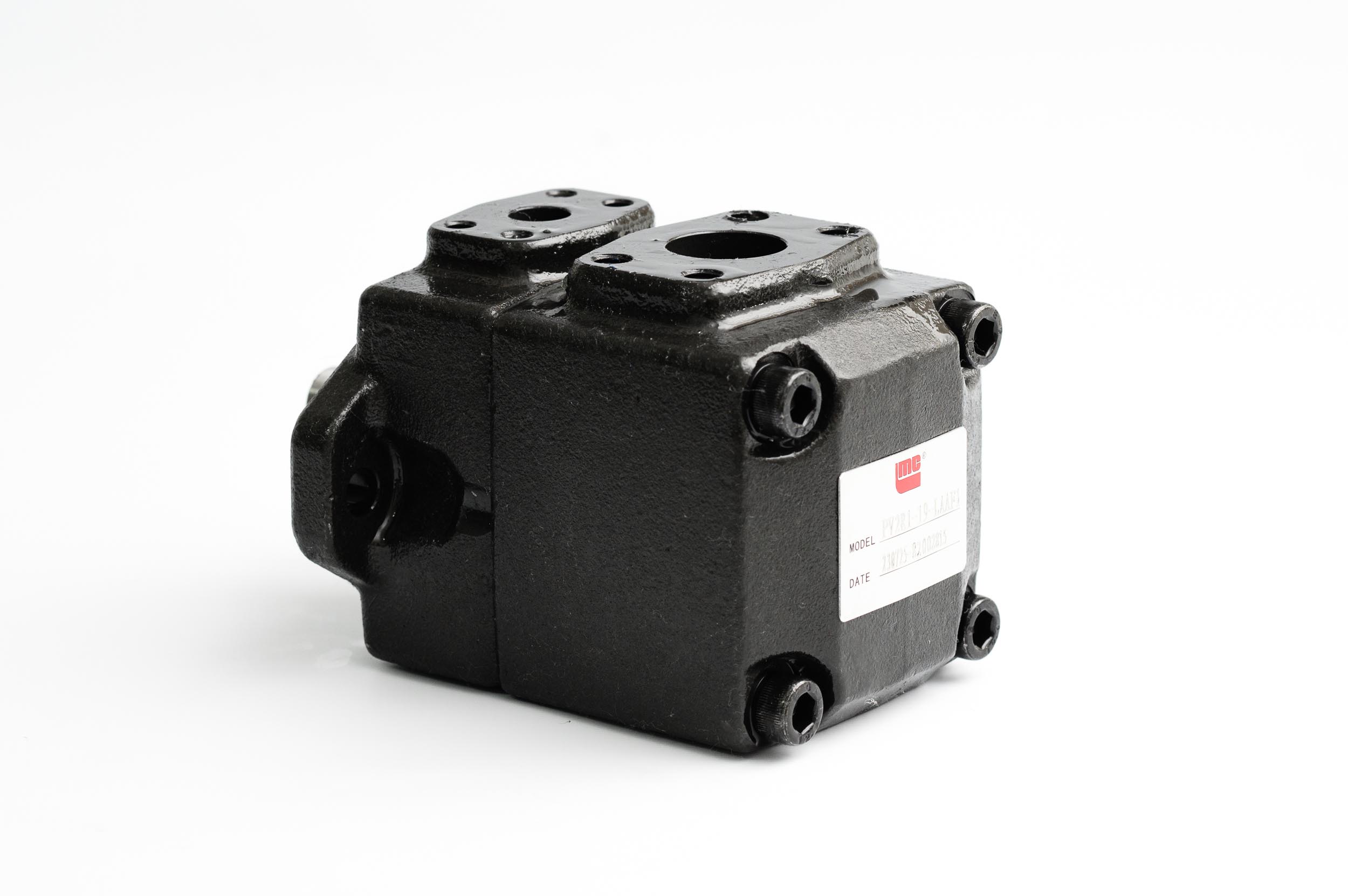 LMC pumps, Yuken PV2R1 type, are vane type, balanced construction, fixed displacement, internal drainage with high performance replaceable cartridge; quieter in the series with normal side surfaces and with higher pressure and speed capacity in the VQ series.