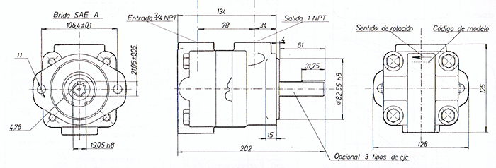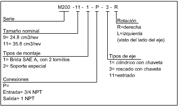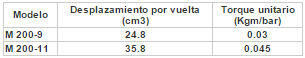 El motor LMC M200, es del tipo a paletas de desplazamiento fijo, bidireccional, construcción balanceada. Puede ser detenido bajo carga protegiéndolo por medio de una válvula de seguridad contra eventuales presiones superiores a la máxima permitida. El drenaje es interno, no existe conexión a tanque.
