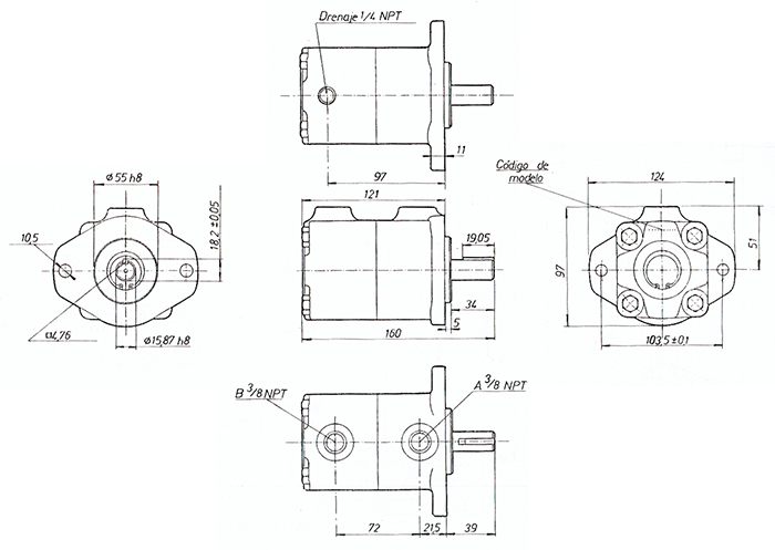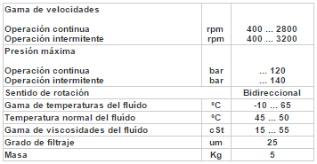 O motor LMC M100, e do tipo a palhetas de deslocamento fixo, bidirecional, construção balançada. A operação pode ser contínua ou intermitente em ambos sentidos de rotação. Quando o circuíto e provisto de proteção por válvula de segurança o motor pode ser usado para ciclo reversível.