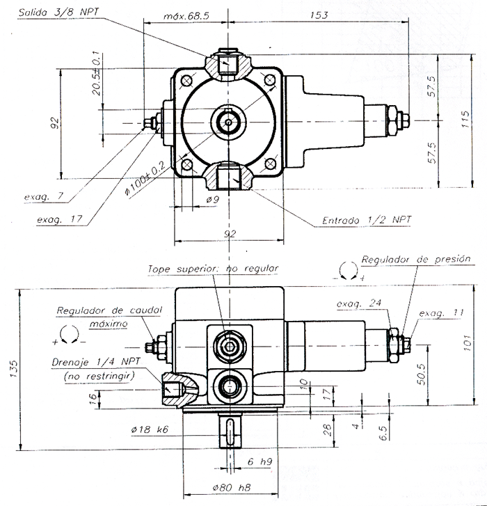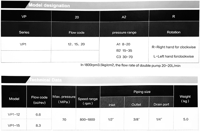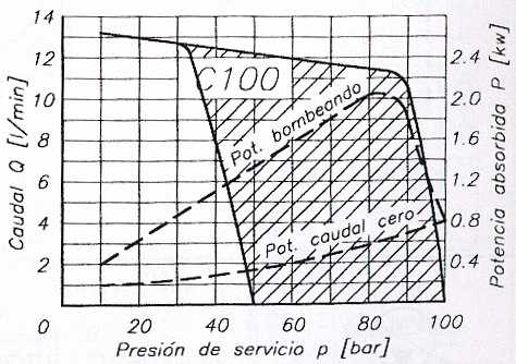 Este tipo de bombas a paletas de cilindrada variable posee un reducido nivel sonoro y una gran seguridad de servicio por purgado automático. Su elevada duración es debido a los cojinetes hidrodinámicos y a las superficies laterales de bronce de aleación especial, lo que le otorga excelentes características de deslizamiento. Su función es generar un caudal e imprimirle solo la energía necesaria, reduciendo las pérdidas de la misma y el calentamiento del fluído. Para imitar el caudal máximo se previó un regulador.
